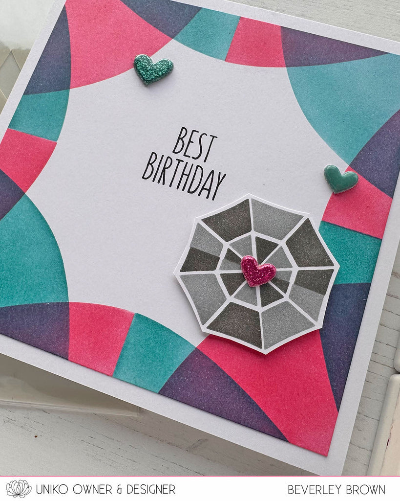 This time I wanted to try the technique with stencils and specifically the Stencil - MOD Background Builder. And I also wanted the background multicoloured, but not blended colours, individual blocks of colour. You know, to add to the challenge!